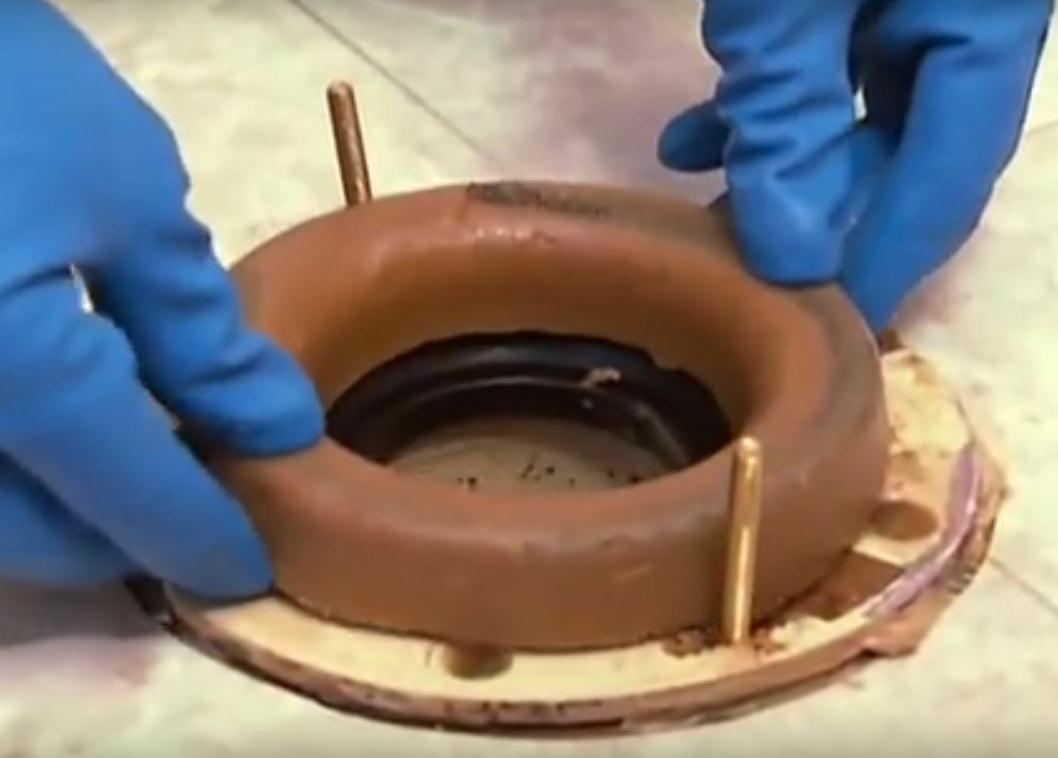 Apply new wax ring into the flange. If the wax ring is cold, let it worm up to room temperature, it is easier to work with when it’s warm. Make sure to center the ring on the flange.